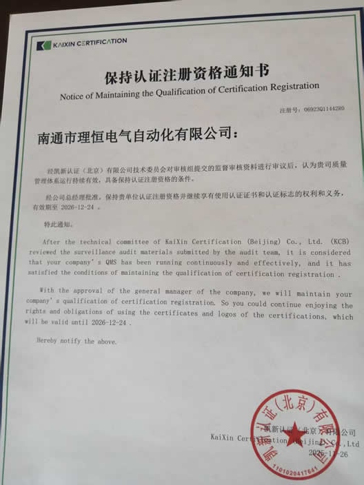 近日,我司收到北京全面質(zhì)量管理認(rèn)證組有關(guān)專家頒發(fā)的《保持認(rèn)證注冊資格通知書》,經(jīng)專家組認(rèn)定,我司保持認(rèn)證注冊資格,并繼續(xù)享有使用認(rèn)證證書和認(rèn)證標(biāo)志的權(quán)利和義務(wù)。